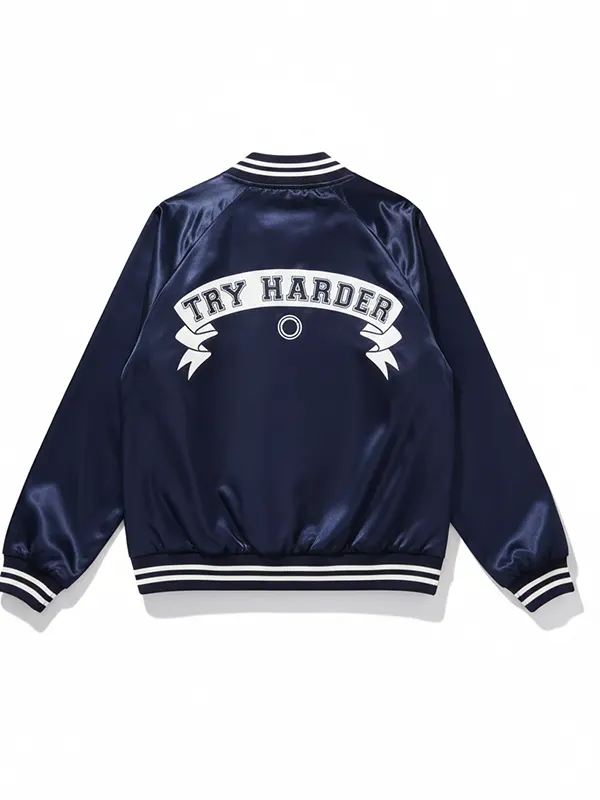 This blue bomber jacket features soft, warm fabric and unique letter detail that makes a bold style statement. Comfortable and stylish for everyday outings or weekend fun this piece adds brightness to your wardrobe. Its cozy fit and durable texture ensure warmth and flair for cool autumn days.