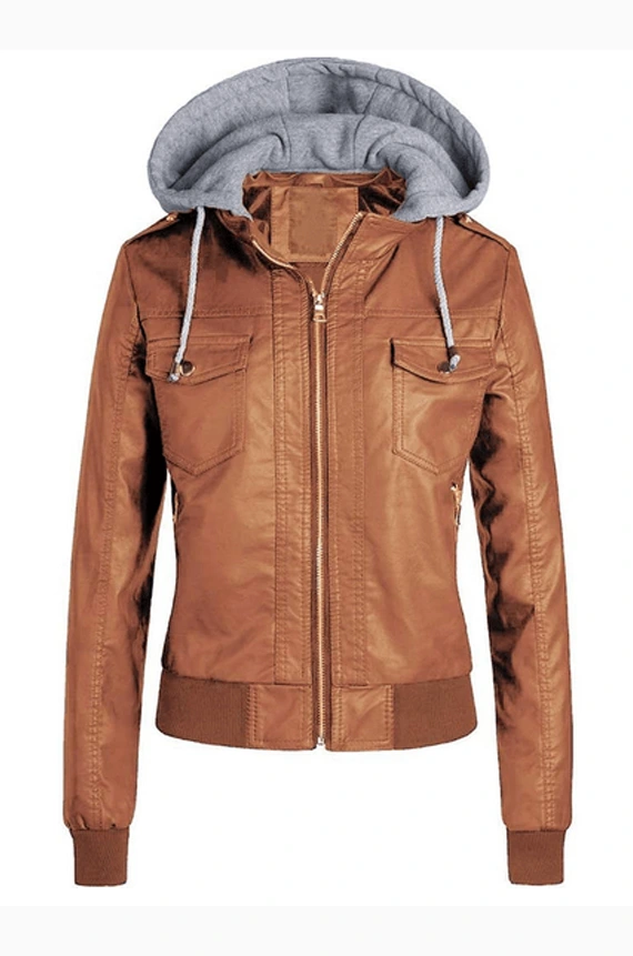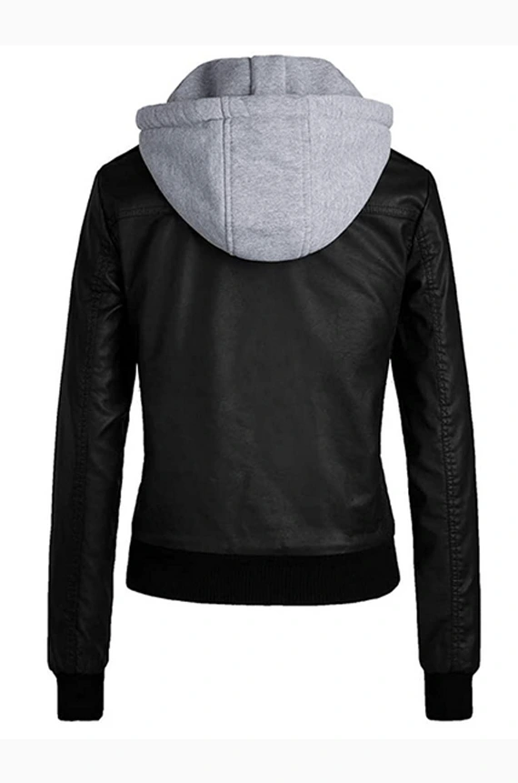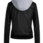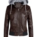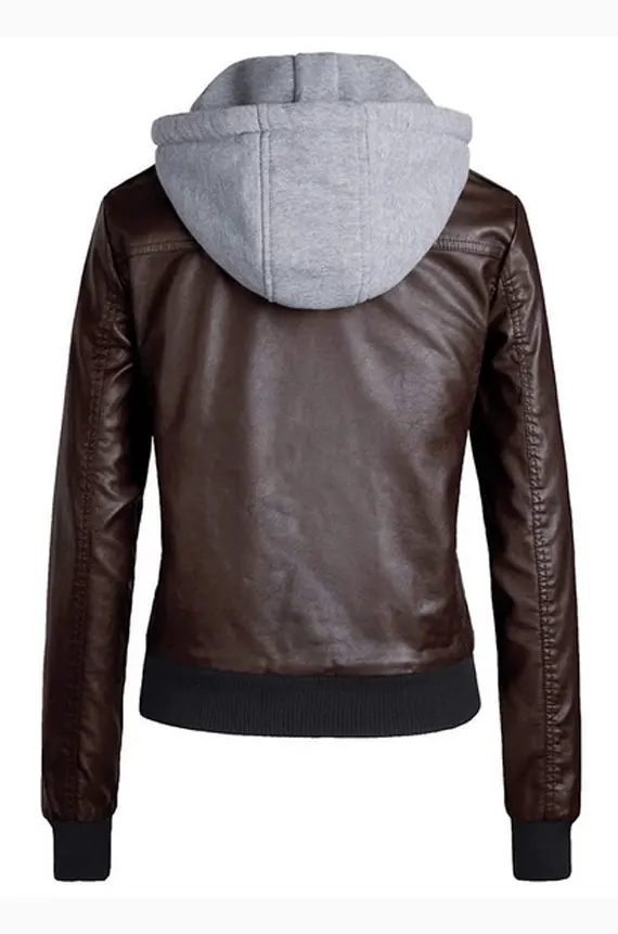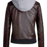 Women’s Black and Brown Bomber Removable Hood Jacket