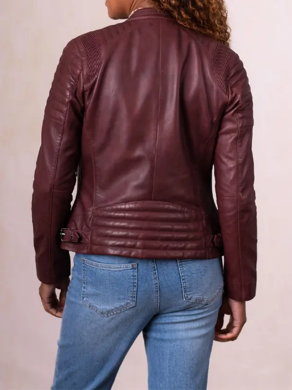 The Buttermere Burgundy Leather Jacket is crafted using genuine leather, supported by a soft viscose lining, and styled with full sleeves, a smooth zipper front, open hem cuffs, a snap tab collar, and generous pockets. Its rich burgundy tone suits weekend outings, friendly gatherings, and everyday styling with warm confidence.