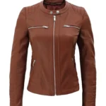 Womens Cafe Racer Hooded Brown Leather Jacket