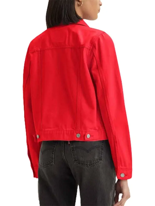 Women-Casual-Style-Red-Trucker-Jacket-Back