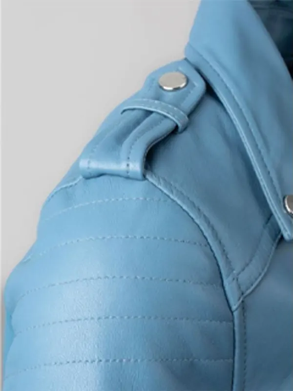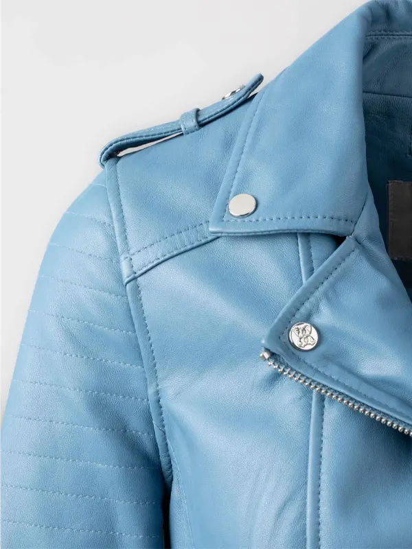 Stylish Women’s Esthwaite Sky Blue Leather Biker Jacket
