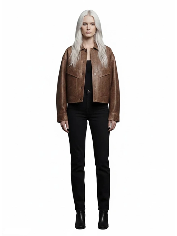 This Women’s Hailey Bomber Leather Jacket is crafted using genuine leather and supported by a soft viscose lining that feels gentle from the start. It brings full sleeves, button closure, buttoned cuffs, a shirt style collar, and simple pockets together in a relaxed way suited for outings and everyday movement.