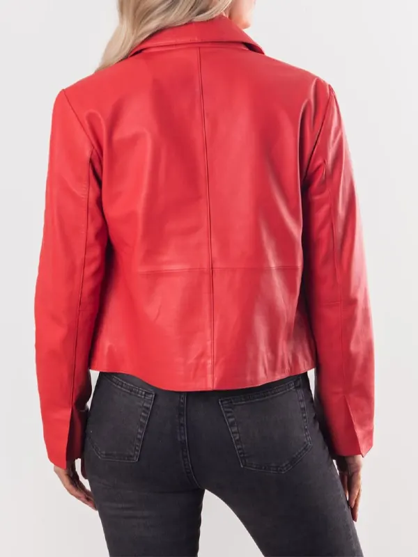 Built for stylish ladies, the Kendal Collared Coral Leather Jacket features a genuine leather exterior, viscose inner for comfort, button front, open cuff, shirt collar, and multiple pockets. It is ideal for casual meetups, relaxed walks, and everyday style with ease.
