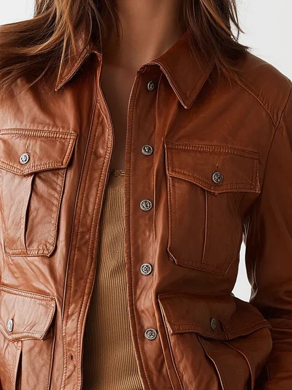 This rich brown leather jacket combines supple material and smooth lining for lasting comfort. Its classic cut and versatile tone make it a reliable choice for everyday wear, weekend outings, or casual dinners. Easy to pair with jeans or skirts, this piece adds a warm, natural-toned touch to your wardrobe.