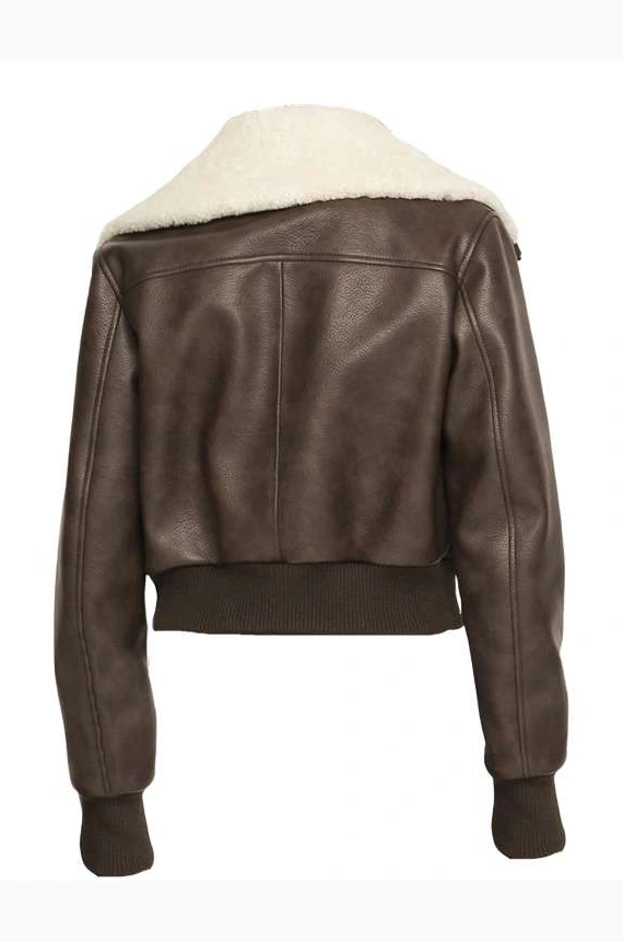 Women’s Brown Luxzip Shearling Cropped Leather Jacket
