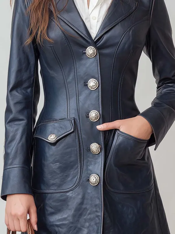 This navy blue faux leather coat brings a fresh pop of color with supple, smooth synthetic leather and a comfortable inner lining. Its clean silhouette pairs beautifully with jeans or dresses for daytime outings, office days or weekend errands. Lightweight yet stylish perfect for mild weather and casual chic looks.