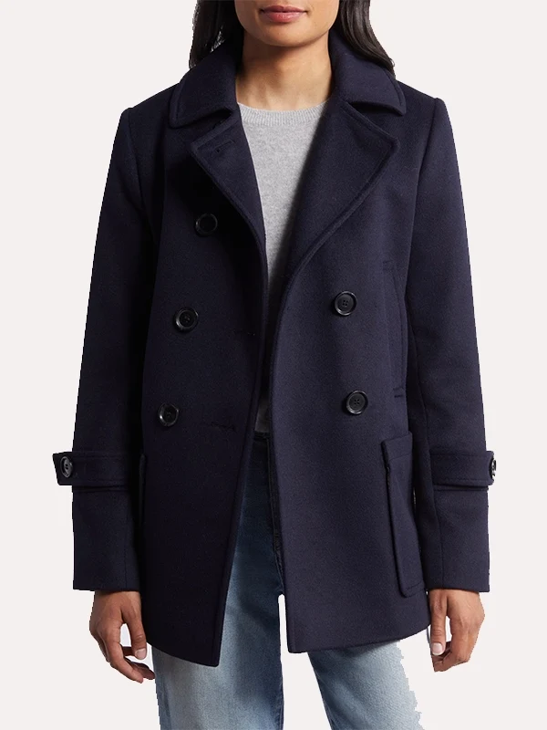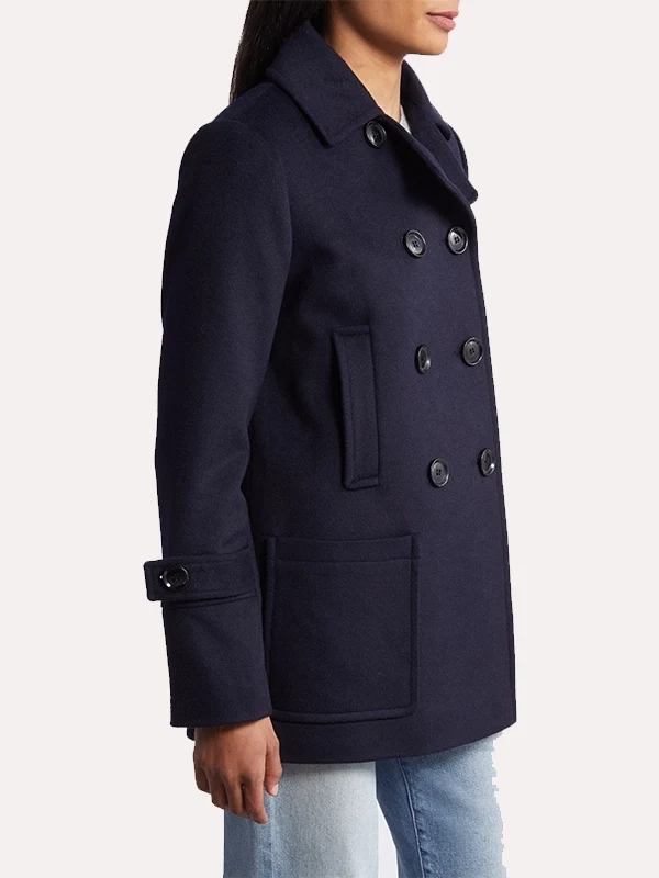 Elegant Women’s Navy Blue Peacoat Wool Jacket