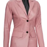 Womens Pink Two Button Leather Blazer