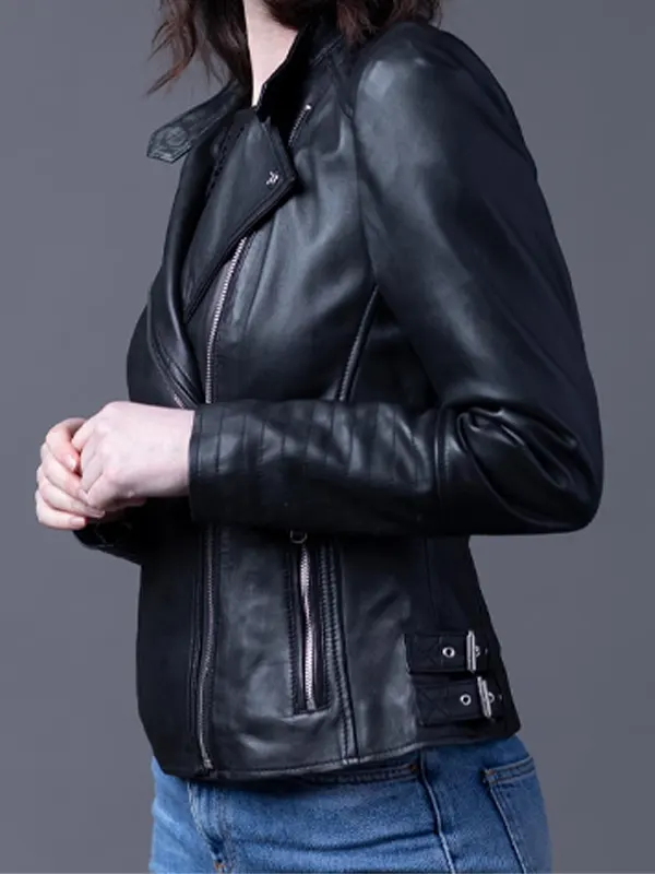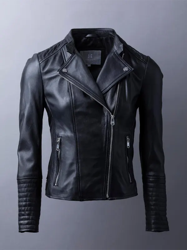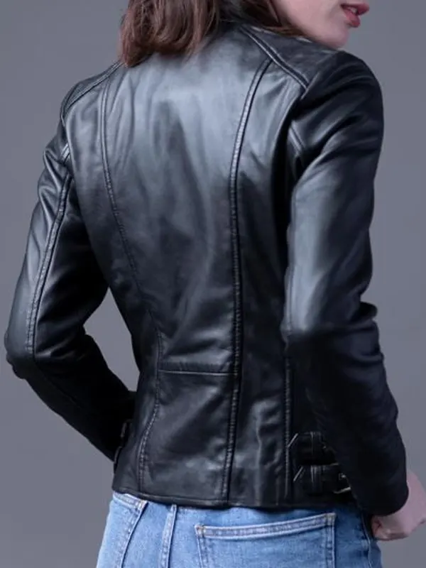Womens Toni Black Leather Biker Jacket