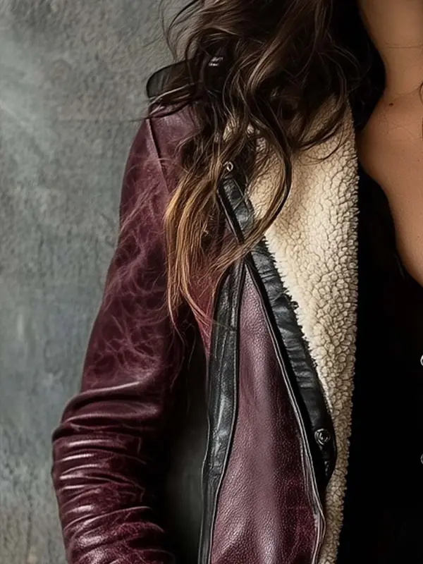 Rich burgundy leather coat radiates refined elegance and cozy warmth on chilly days. The plush lining caresses skin while the tailored cut flatters curves. Its versatile length pairs with dresses, trousers, or skirts, adding sophistication to outfits. Perfect for winter strolls, formal dinners, or festive events, bringing timeless elegance to every outing.
