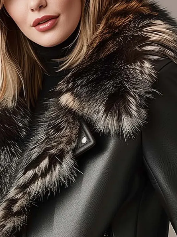 Blending faux-leather exterior with soft faux-fur lining, this jacket delivers both cozy warmth and refined style. The smooth outer finish keeps it polished while the plush interior protects against chilly weather. Ideal for autumn-winter days, casual brunches, or evening strolls, a smart way to stay warm and fashionable.
