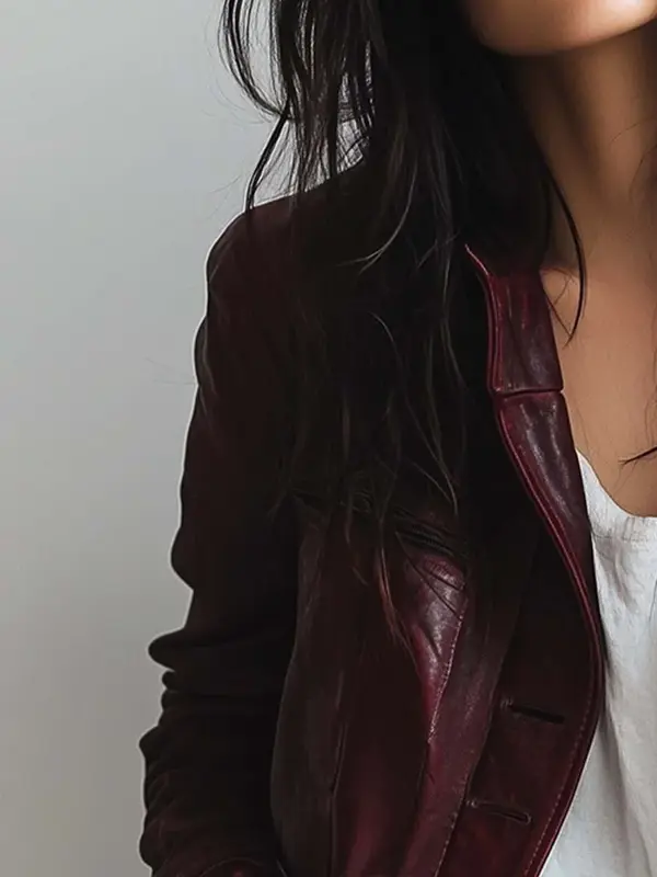 Timeless maroon leather jacket crafted with soft, supple leather and gentle inner lining for comfortable wear all day long. It’s a tailored fit flatters the figure while offering versatility across seasons. Dress it up for dinner nights or pair it with jeans for Sunday brunches. Embrace understated luxury and refined style that lasts for years.